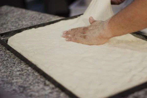 La cottura in teglia si differenzia per una cottura più lenta rispetto a quella diretta su mattone, rispettando i tempi delle pizze più ricche di pasta