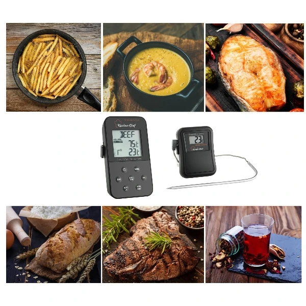 Per la preparazione ottimale di carne e pollame attraverso il monitoraggio della temperatura interna e del forno.